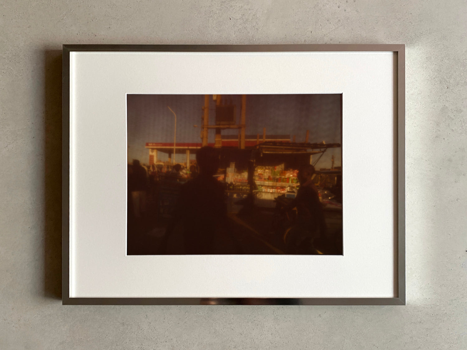 Die Komposition von Khartoum 3 ist imposant — das Thema angenehm banal. Menschen huschen im Vordergrund vorbei. In der Sonne glitzert ein Kiosk. Eine riesige Tankstelle baut sich im Hintergrund auf. Alltag in Khartoum. Aber monumental.