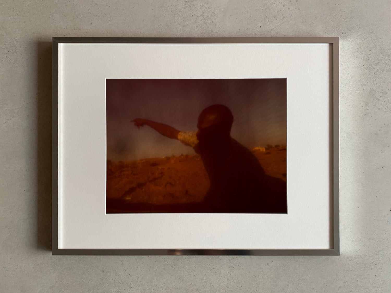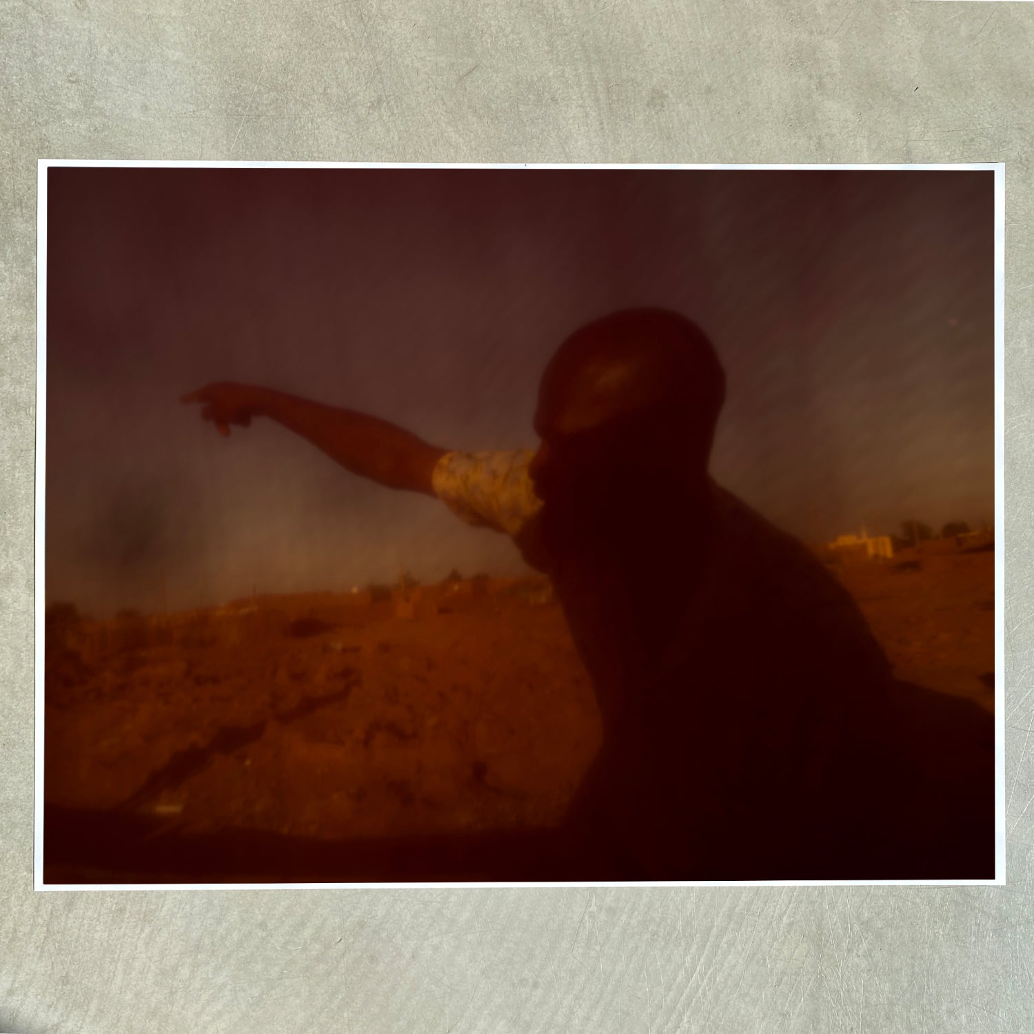 In Khartoum 4 weist jemand den Weg. Quer durchs Bild. Vor sandiger Landschaft und weitem Himmel wird hier die richtige Richtung gegeben.